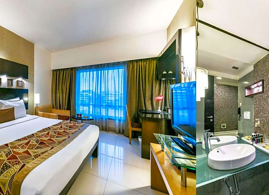 Air-conditioned rooms feature dark wood furnishings and a comfortable seating area. Each is fitted with a personal safe, mini-bar and tea/coffee making facilities.